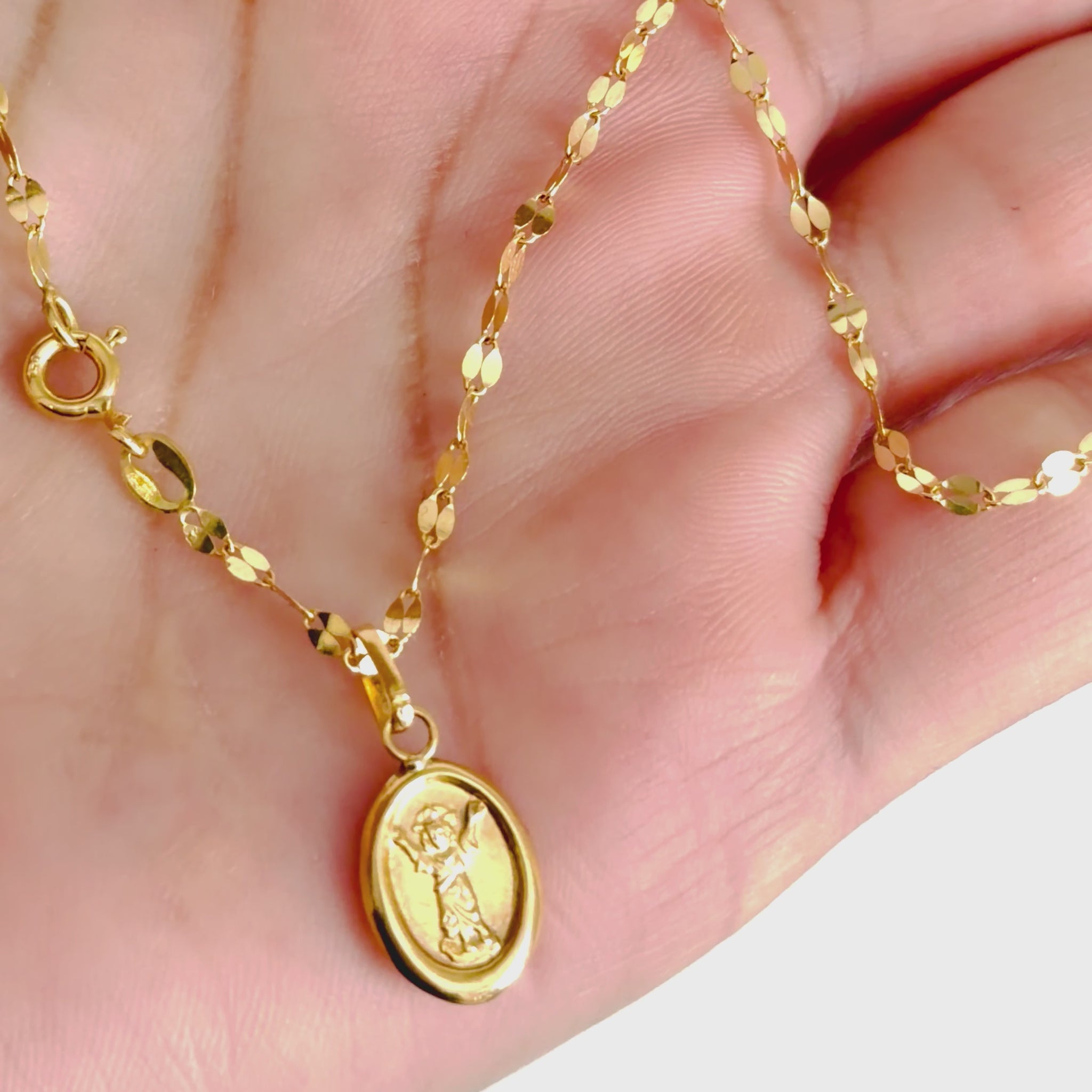 MIRROR FLOWER CHAIN WITH OUR LADY OF DIVINO NIÑO PENDANT